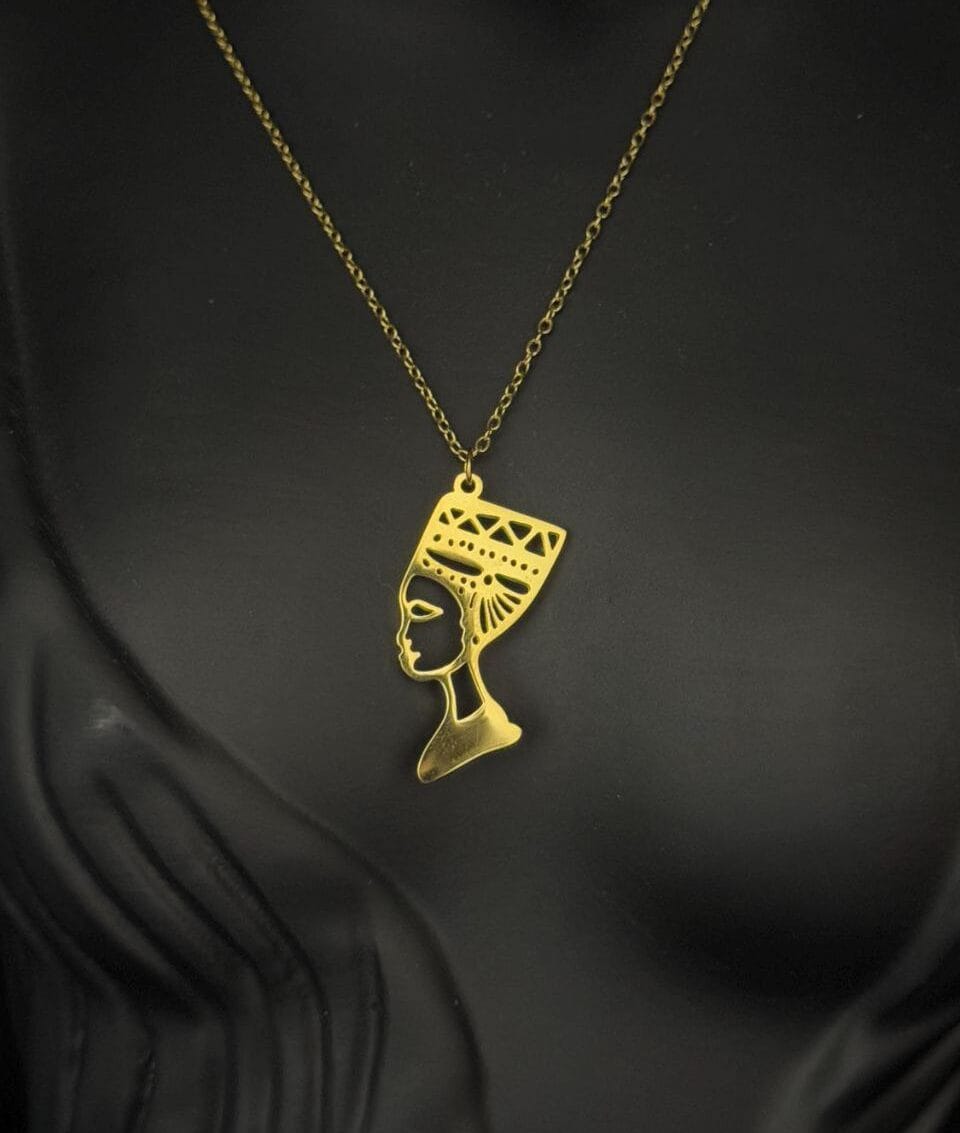 سلسلة نفرتيتي ليست مجرد إكسسوار، بل هي قطعة فنية تحمل رمز الجمال والقوة الفرعونية. تصميم أيقوني باللون الذهبي اللامع، يضيف إلى إطلالتك لمسة من الرقي والتفرد في كل مناسبة.